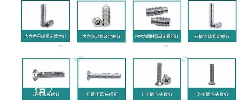 內(nèi)六角尖端緊定螺釘(尖端機米)、內(nèi)六角柱端緊定螺釘(柱端機米)、沉頭內(nèi)六角螺釘(平杯)、半圓頭內(nèi)六角螺釘(圓杯)、十字槽盤頭機螺釘、十字槽沉頭機螺釘、十字槽大扁頭機螺釘、十字槽盤頭自攻釘、十字槽沉頭自攻釘、十 螺栓有:1、方頭螺栓,2、半圓頭方頸螺栓,3、十字槽盤頭螺釘,4、內(nèi)六角沉頭螺釘,5、方螺母C級,6、蝶形螺母,7、六角頭螺栓,8、十字槽盤頭自攻螺釘。大小有M18、M6、M8、M16、M10、M12、M14、M20等型號。通常用