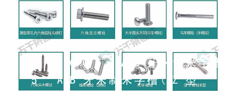 ④ 螺釘牙型 A:自攻尖尾(日標第1種)疏 AB:自攻尖尾(日標第4種)密;B:自攻平尾(日標第2種)疏;C:自攻平尾(日標第3種)密;P:雙絲牙 HL:高低牙 U:菠蘿牙紋;T:自攻平尾切腳 AT:自攻絲尖尾切 1)開槽普通螺釘多用于較小零件的連接。它有盤頭螺釘、圓柱頭螺釘、半沉頭螺釘和沉頭螺釘。盤頭螺釘和圓柱頭螺釘的釘頭強度較高,瑁在普通的部件連接上;半沉頭螺釘的頭部呈弧形,安裝后它的頂端略外露,且美觀光滑,一般用