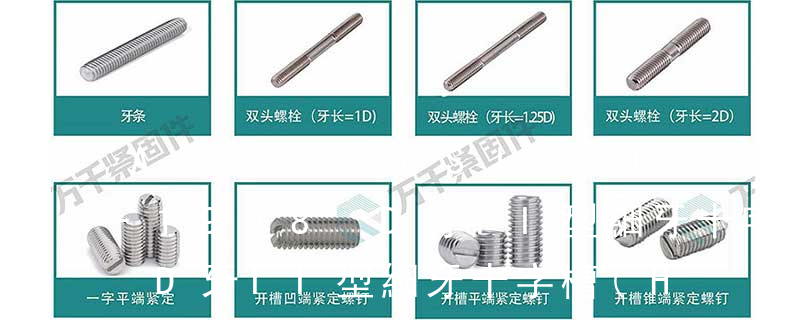 (鐵板牙自攻螺絲) B-2: Plastic Tapping Screw. (塑膠用,自攻螺絲) C: Wooden Screw : 木工螺絲 D: Drywall Screw :水泥墻螺絲 E: Self Drilling Screws鉆尾螺絲(不銹鋼鉆尾螺絲,復合材料鉆尾螺絲) F:膨脹螺絲,四片膨脹螺絲又