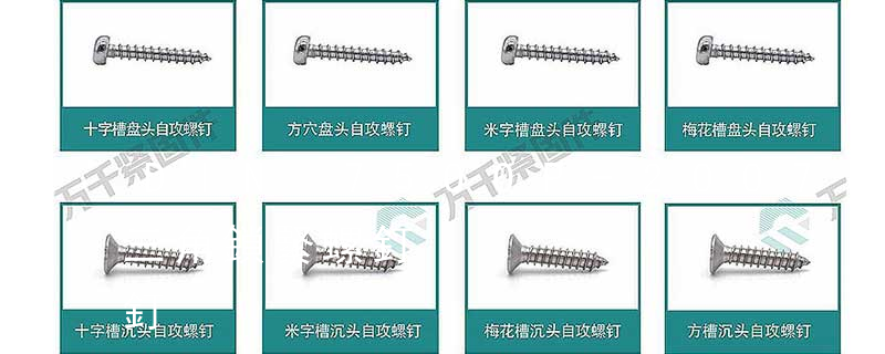 外扳擰:六角、六角法蘭面、六角凸緣、六角花形等;內(nèi)扳擰:一字槽、十字槽H型(Phillips)、十字槽Z型(Pozidriv)、十字槽F型(Frearson)、四方槽(Scrulox)、復(fù)合槽、內(nèi)花鍵、內(nèi)六角花形(梅花槽)、內(nèi)三角、內(nèi)六角
