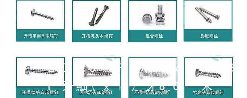 3.螺釘:也是由頭部和螺桿兩部分構(gòu)成的一類緊固件,按用途可以分為三類:機器螺釘、緊定螺釘和特殊用途螺釘。機器螺釘主要用于一個緊定螺紋孔的零件,與一個帶有通孔的零件之間的緊固連接,不需要螺母配合(這種連接形式稱為螺釘連接,也屬于 (鐵板牙自攻螺絲) B-2: Plastic Tapping Screw. (塑膠用,自攻螺絲) C: Wooden Screw : 木工螺絲 D: Drywall Screw :水泥墻螺絲 E: Self Drilling Screws鉆尾螺絲(不銹鋼鉆尾螺絲,復(fù)合材料鉆尾螺絲) F:膨脹螺絲,四片膨脹螺絲又